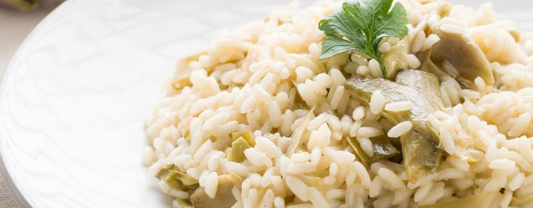 Rosolate leggermente l’aglio nell’olio e aggiungete i carciofi con un po’ di acqua. Portate a cottura, coprendo con un coperchio, quando si sarà anche asciugato il sugo di cottura aggiungete il riso ed il sale e tostate. A questo punto aggiungete pian piano il brodo vegetale girando spesso. A fine cottura aggiungete i pezzettini di asiago e il pepe, mantecate finché non si sarà sciolto il formaggio.