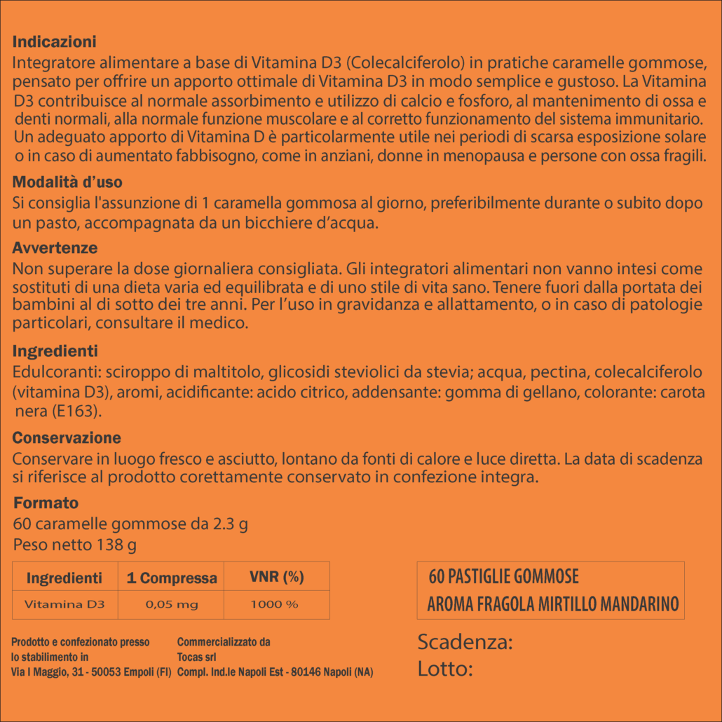 La sua formula innovativa in pastiglie gommose rende l’assunzione più piacevole e adatta a tutta la famiglia. Grazie ai suo delizioso aroma: fragola, mirtillo e mandarino, Tredivit 2000 U.I. è la soluzione perfetta per chi vuole integrare la Vitamina D3 in modo gustoso e pratico.